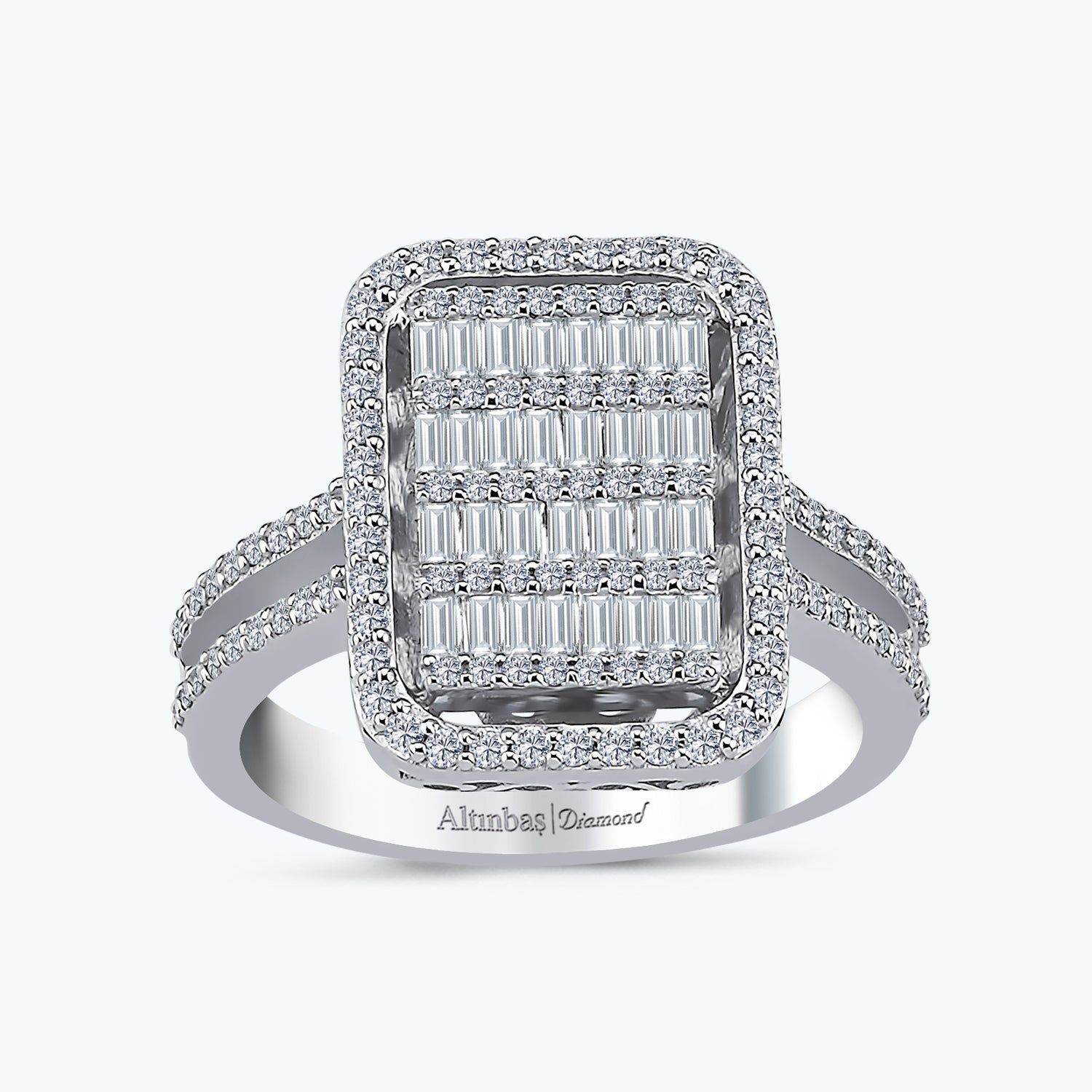 Erleben Sie die Eleganz und Raffinesse mit dem Baguette Diamant Ring von Altınbaş Juwelier. Dieses atemberaubende Schmuckstück ist aus 14 Karat Weißgold gefertigt, das die Schönheit von Gold auf wunderbare Weise zur Geltung bringt. Das Weißgold verleiht dem Ring einen modernen und zeitlosen Charme, der perfekt zu jeder Garderobe passt. Der Ring ist mit funkelnden Baguette-Diamanten besetzt, die ein außergewöhnliches Funkeln und Leuchten erzeugen. Jeder Diamant ist mit größter Sorgfalt und Präzision gesetzt, um ein Maximum an Glanz und Brillanz zu erzielen. Die Seitesteine verleihen dem Ring zusätzliche Eleganz und machen ihn zu einem echten Hingucker. Dieser Ring ist nicht nur ein Symbol für Luxus und Raffinesse, sondern auch ein Zeichen für die ewige Liebe. Er ist das perfekte Geschenk für die besondere Frau in Ihrem Leben, um Ihre unendliche Liebe und Hingabe zu zeigen. Mit diesem Ring können Sie Ihre Gefühle auf die schönste Weise ausdrücken. Der Baguette Diamant Ring von Altınbaş Juwelier ist ein Kunstwerk, das die Handwerkskunst und das Engagement für Qualität widerspiegelt, für die unsere Marke bekannt ist. Er ist ein Ausdruck von Stil und Eleganz und eine wunderbare Ergänzung zu jeder Schmucksammlung. Ob für einen besonderen Anlass oder einfach nur, um sich selbst zu verwöhnen, dieser Ring ist die perfekte Wahl. Er wird sicherlich ein Lächeln auf das Gesicht der Trägerin zaubern und ihr ein Gefühl von Luxus und Eleganz verleihen. Mit diesem Ring können Sie sicher sein, dass Sie immer im Mittelpunkt der Aufmerksamkeit stehen werden.