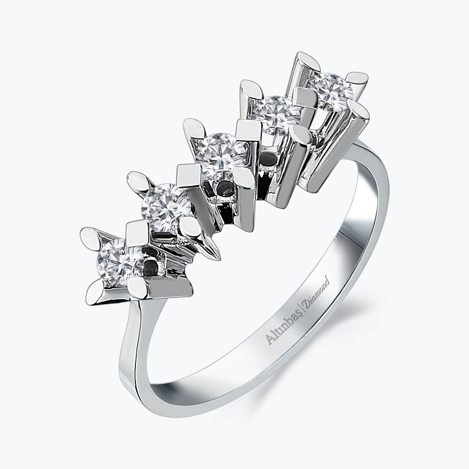 Mit einem zarten Design ist das Fünf Steine Diamantring Schmuckstück von Altınbaş aus 8Kt massivem Gold handgefertigt. Die funkelndsten pure diamond wurden sorgfältig ausgewählt und von erfahrenen Handwerkern sorgfältig eingesetzt.