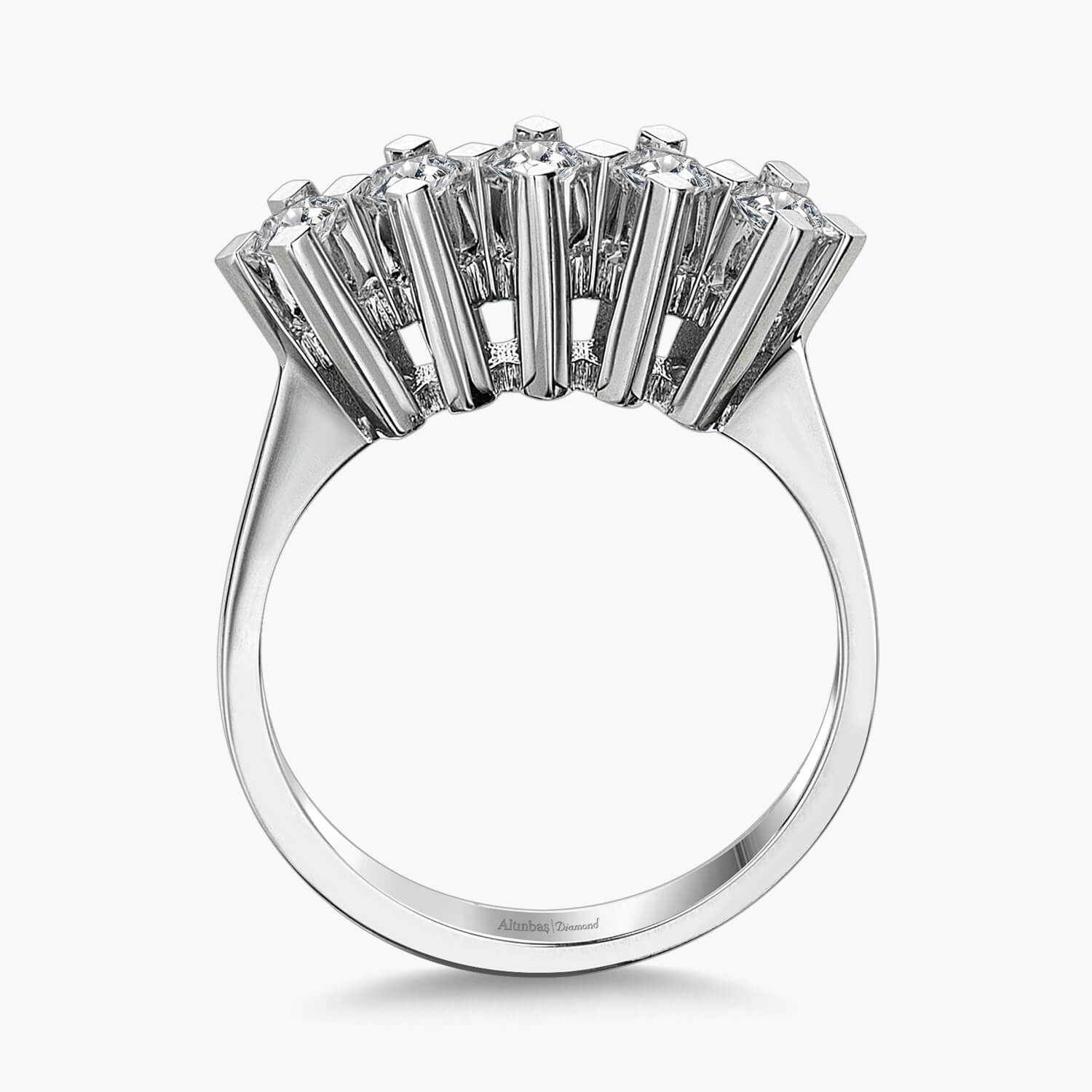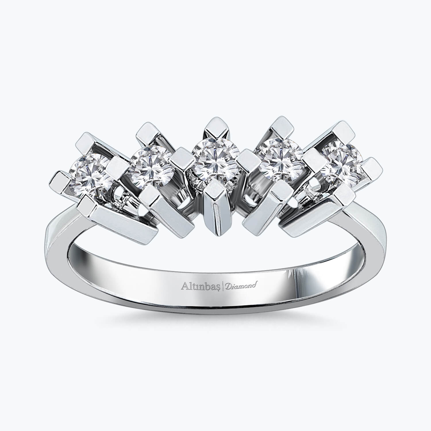 Entdecken Sie die puren Luxus mit dem Fünf-Stein-Diamantring von Altınbaş Juwelier. Dieses exquisite Meisterwerk ist eine Manifestation von reinstem Luxus und ein Symbol für Wohlstand und Erfolg. Es ist aus 14 Karat Weißgold gefertigt, das für seine Langlebigkeit und seinen zeitlosen Glanz bekannt ist. Der Ring verfügt über fünf atemberaubende runde Diamanten, die sorgfältig ausgewählt und perfekt aufeinander abgestimmt sind. Jeder Diamant symbolisiert eine einzigartige Facette der Liebe und zusammen bilden sie einen Kreis der ewigen Liebe. Dieser Ring ist nicht nur ein Schmuckstück, sondern auch eine Hommage an die Vereinigung von Herzen und die unendliche Liebe, die sie teilen. Die exquisite Handwerkskunst von Altınbaş Juwelier ist in jedem Detail dieses Rings sichtbar. Die Diamanten sind meisterhaft in das Weißgold eingearbeitet, um einen nahtlosen Übergang und eine harmonische Balance zu schaffen. Der Ring strahlt eine subtile Eleganz aus, die die natürliche Schönheit jeder Frau unterstreicht. Dieser Fünf-Stein-Diamantring ist das perfekte Geschenk für die besondere Frau in Ihrem Leben. Ob als Verlobungsring oder als Symbol Ihrer fortwährenden Liebe, dieser Ring wird sicherlich ein Lächeln auf ihr Gesicht zaubern. Lassen Sie diesen Ring die Geschichte Ihrer Liebe erzählen und sie auf ihrer Reise begleiten. Mit Altınbaş Juwelier wählen Sie nicht nur ein Schmuckstück, sondern auch eine Lebensphilosophie. Wir stehen für Qualität, Exzellenz und eine tiefe Wertschätzung für die Kunst der Schmuckherstellung. Wählen Sie Altınbaş Juwelier und lassen Sie Ihre Liebe in reinster Form glänzen.