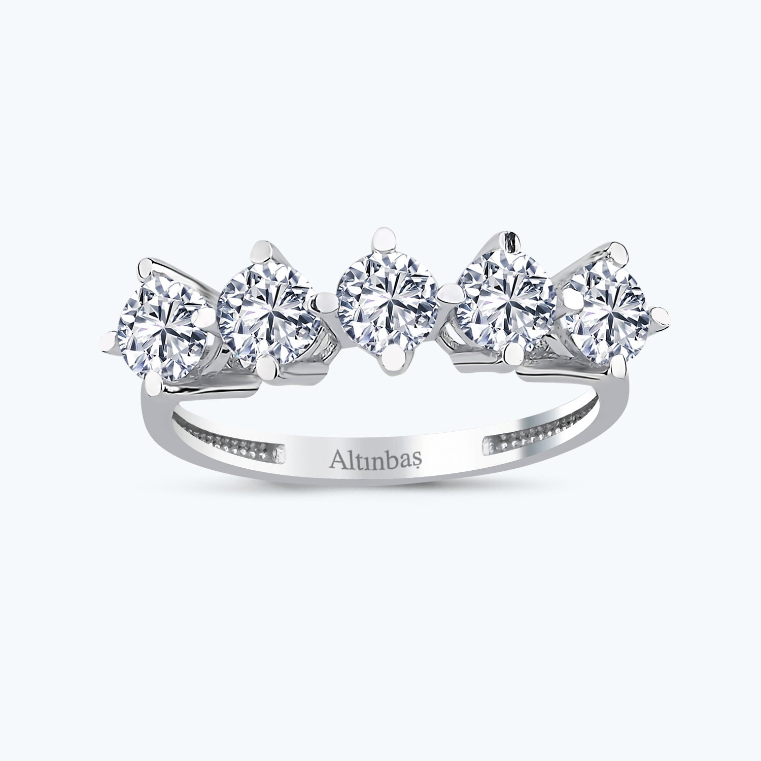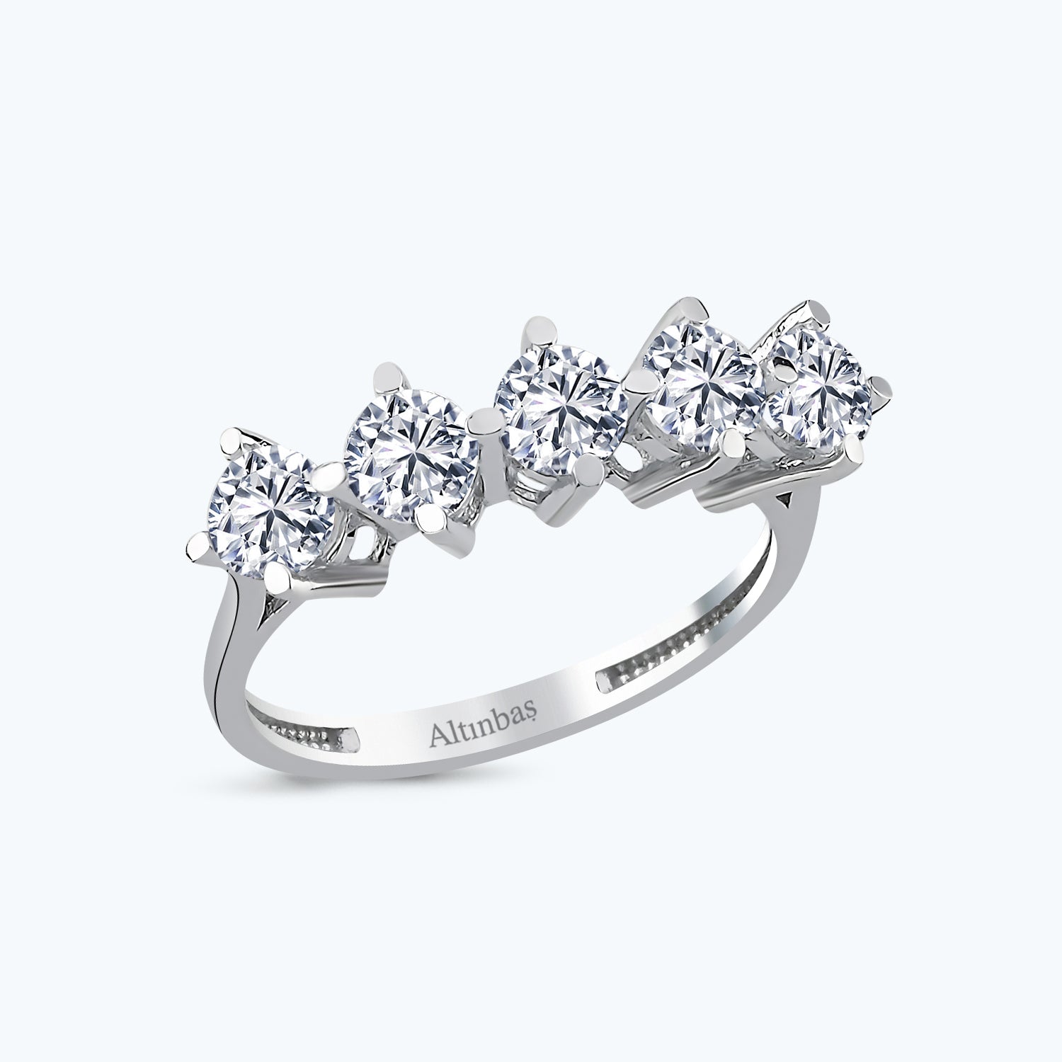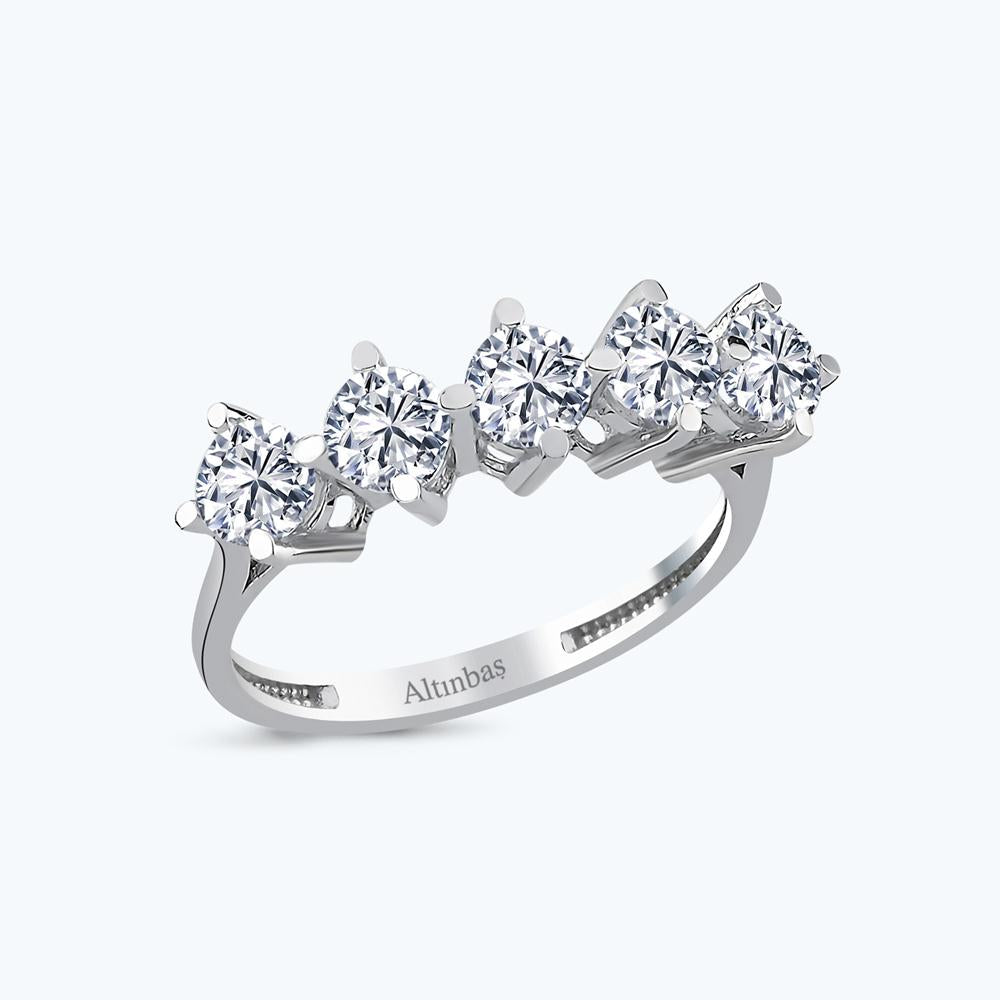 Erwecken Sie Eleganz und Charme zum Leben mit diesem 5-Stein Gold Verlobungsring von Altınbaş Juwelier. Dieses exquisite Schmuckstück ist aus 14 Karat Weißgold gefertigt, einem edlen Metall, das für seine Langlebigkeit und seinen Glanz bekannt ist. Der Ring ist mit fünf funkelnden Cubic Zirkonia besetzt, die in ihrer Brillanz Diamanten nahekommen. Jeder Stein symbolisiert einen einzigartigen Aspekt Ihrer Liebe, was diesen Ring zu einem perfekten Ausdruck Ihrer tiefen Gefühle macht. Dieser Ring ist nicht nur ein Symbol für Ihr Engagement, sondern auch ein Statement für Ihren anspruchsvollen Geschmack. Mit seinem raffinierten Design und seiner makellosen Verarbeitung verkörpert er die Eleganz und Qualität, die Altınbaş Juwelier auszeichnet. Egal ob Sie ihn täglich tragen oder zu besonderen Anlässen, dieser Verlobungsring erhöht Ihre Alltagseleganz und lässt Sie bei jedem Anlass strahlen. Er ist eine glänzende Ergänzung zu Ihrer Schmucksammlung und ein Schmuckstück, das Sie immer wieder mit Stolz tragen werden. Schenken Sie diesen Ring der Person, die Sie lieben, und drücken Sie Ihre Liebe und Hingabe auf die schönste Weise aus. Mit diesem Altınbaş Verlobungsring wählen Sie nicht nur ein Schmuckstück, sondern ein Versprechen der Liebe, das ein Leben lang hält. Altınbaş Juwelier, wo Liebe und Handwerkskunst aufeinandertreffen, um zeitlose Meisterwerke zu schaffen.