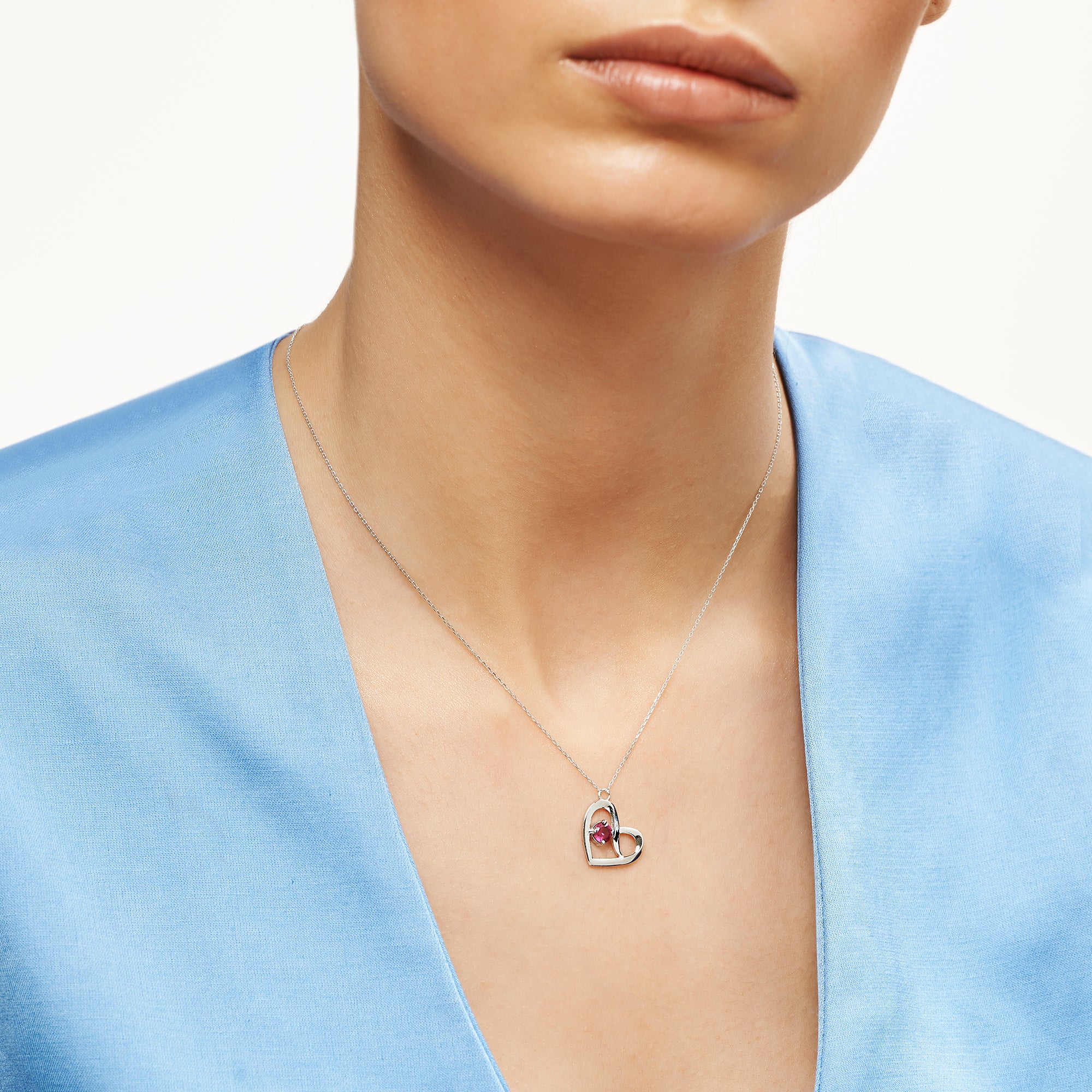 Herz Goldkette mit rotem Stein