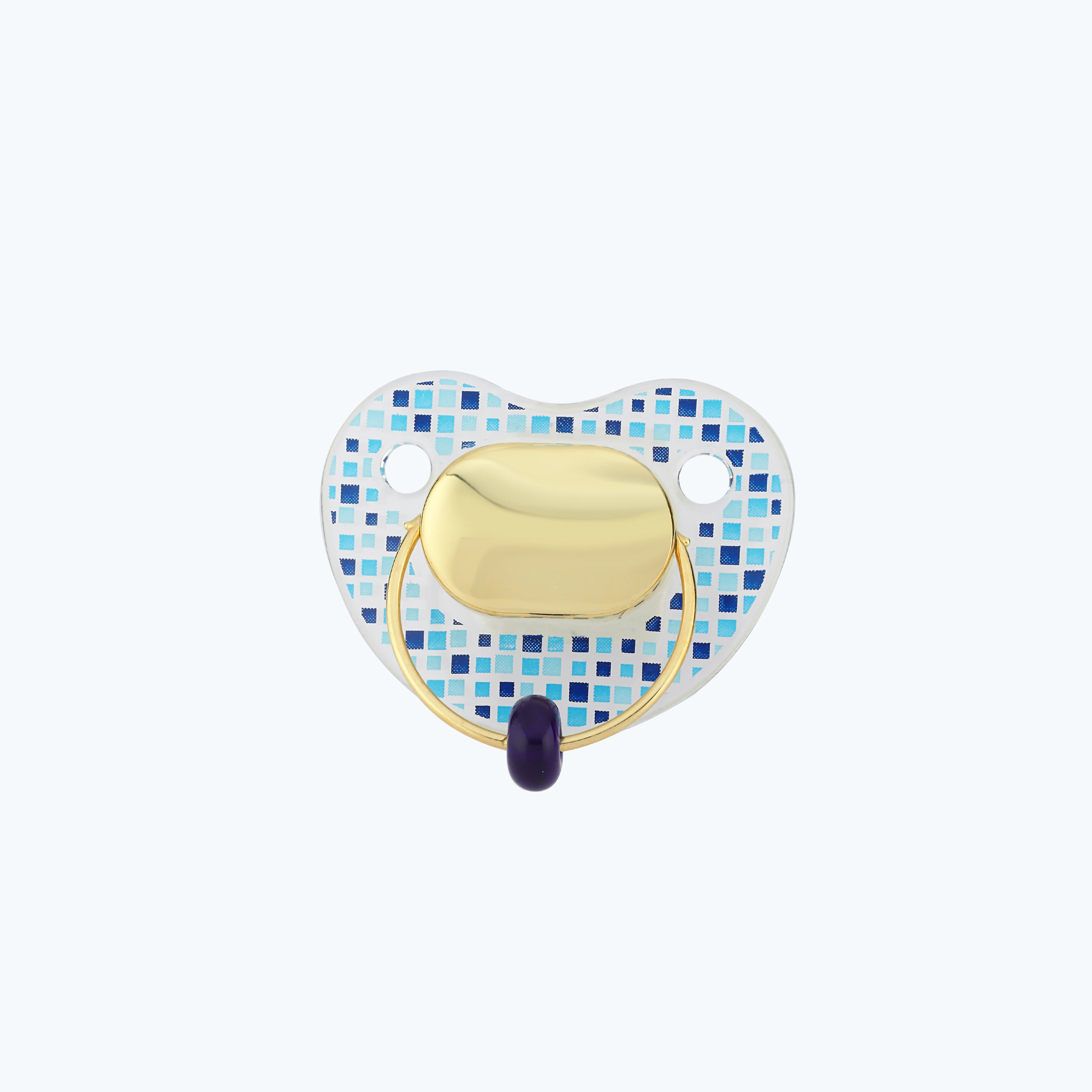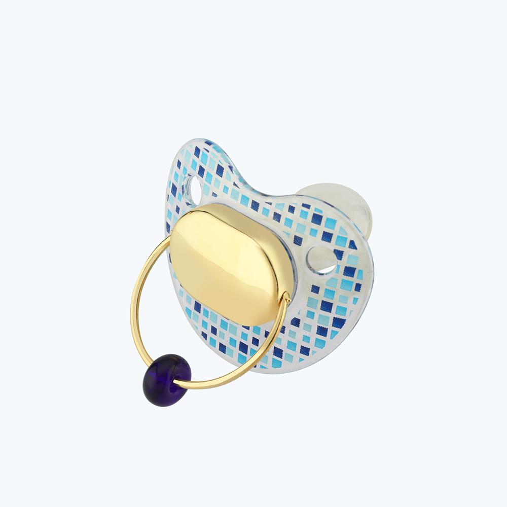 Gold Baby-Schnuller mit Blauem Stein