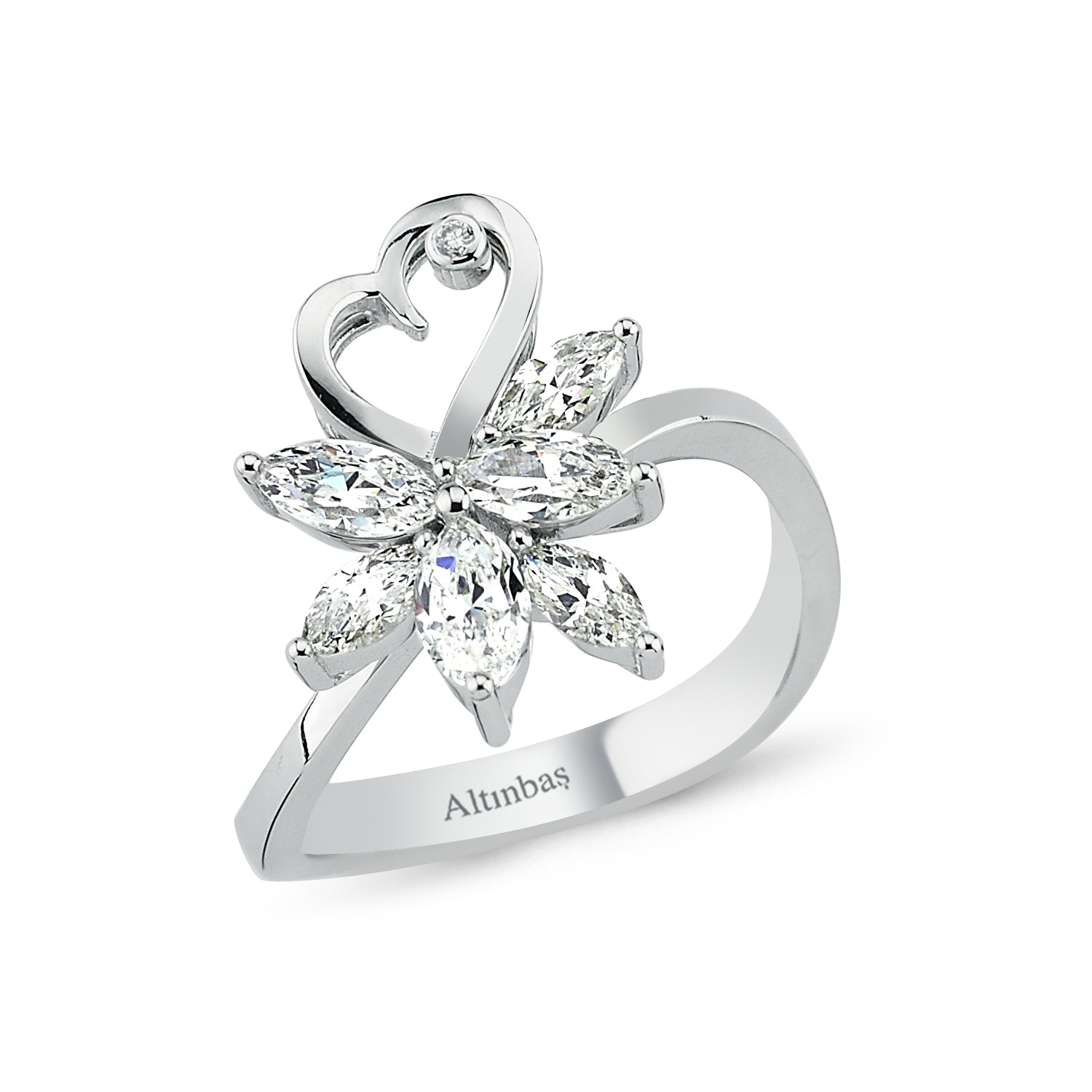Mit einem zarten Design ist das Schmetterling Weißer Topas Diamantring Schmuckstück von Altınbaş aus 14Kt massivem Gold handgefertigt. Die funkelndsten pure diamond and topas wurden sorgfältig ausgewählt und von erfahrenen Handwerkern sorgfältig eingesetzt.