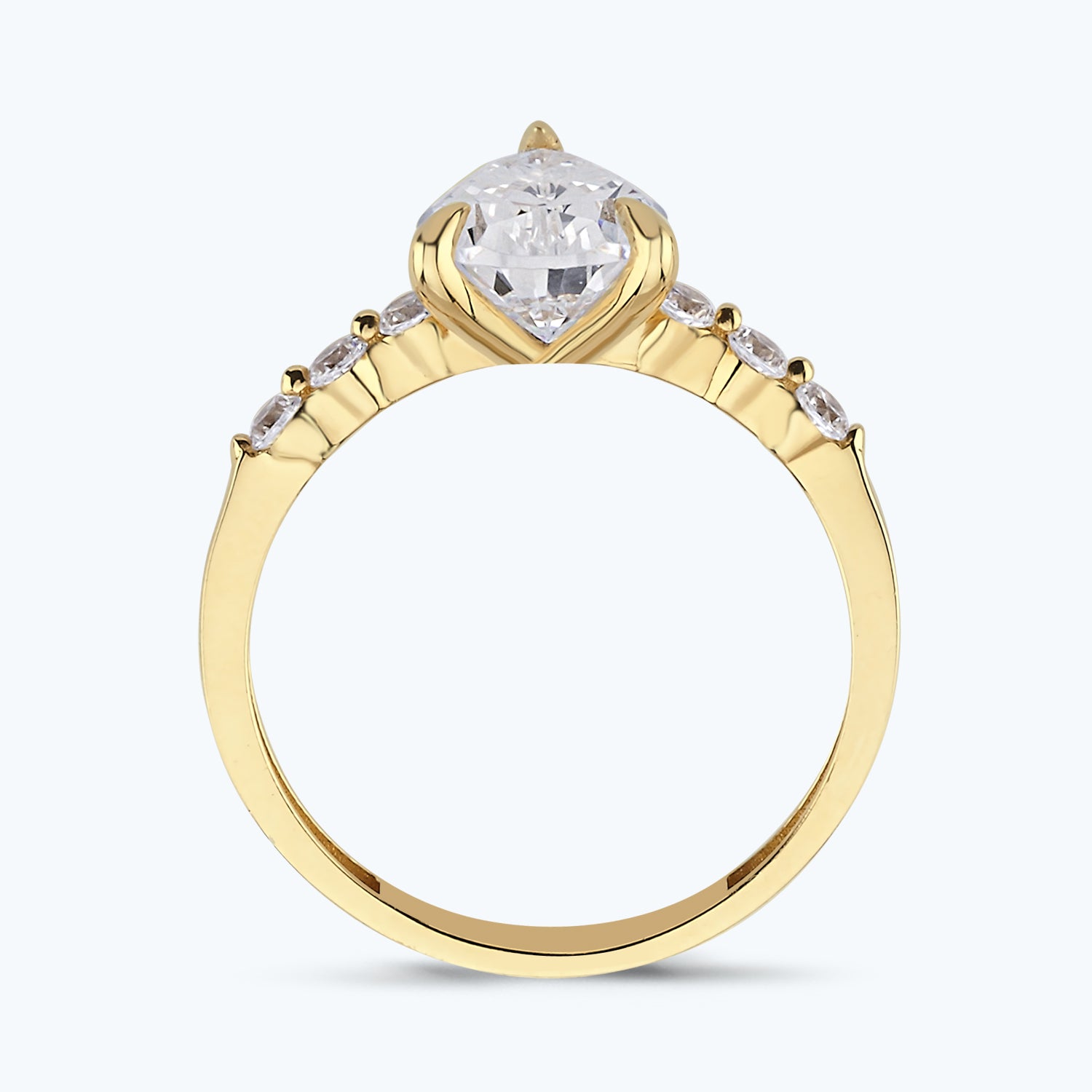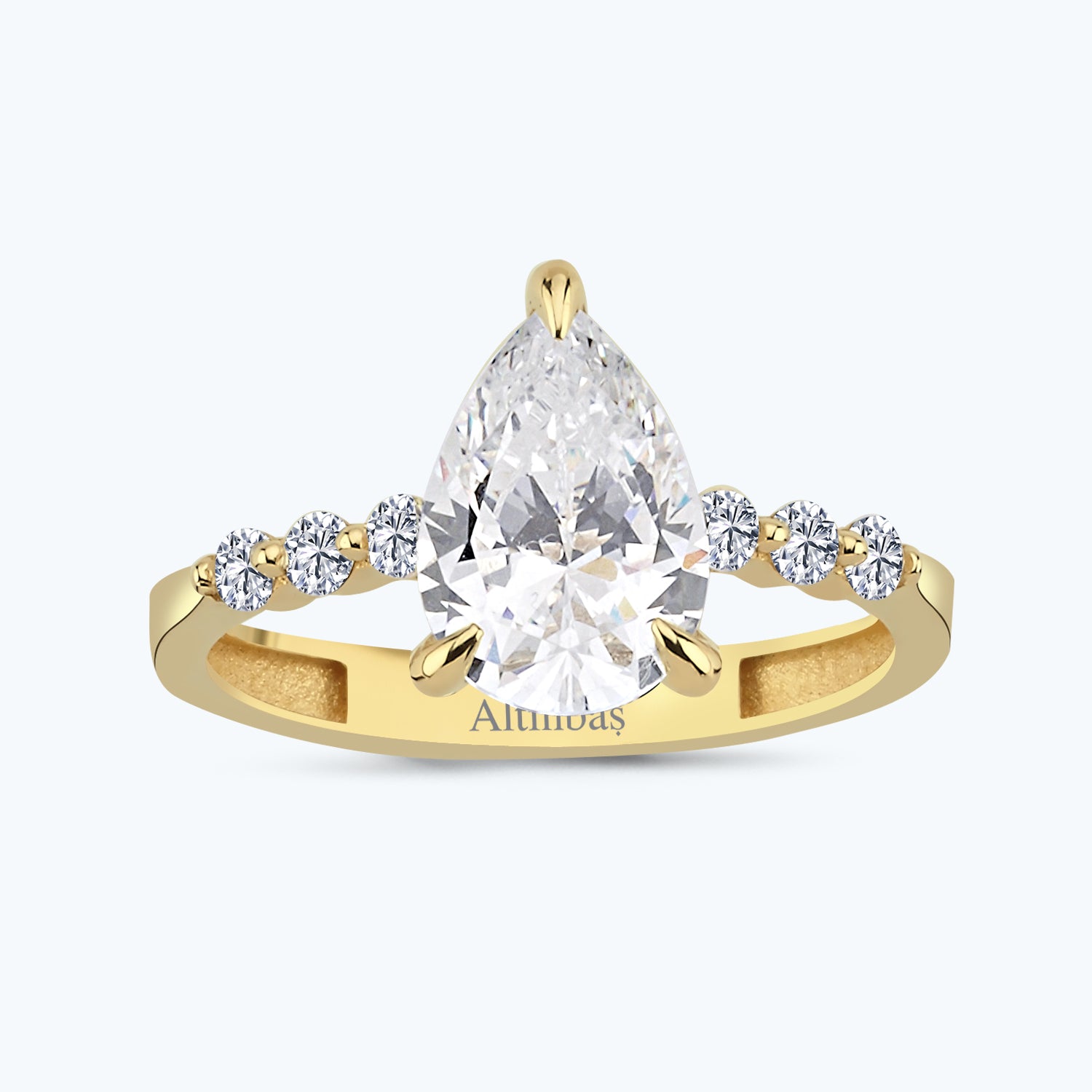 Entdecken Sie den Drop Gold Ring von Altınbaş Juwelier, ein Symbol ewiger Eleganz. Dieses exquisite Schmuckstück ist aus 14 Karat Gelbgold gefertigt und bietet eine langlebige Schönheit, die nie verblasst. Die Verwendung von Gelbgold verleiht dem Ring einen warmen und reichen Glanz, der perfekt zu jedem Hautunterton passt. Im Zentrum des Designs befindet sich ein strahlender weißer Kubikzirkonia in Birnenform, der das Licht auf beeindruckende Weise einfängt und reflektiert. Seine funkelnde Präsenz verleiht dem Ring einen Hauch von Luxus und Raffinesse, der sicherlich alle Blicke auf sich ziehen wird. Dieser Ring ist nicht nur ein atemberaubendes Schmuckstück, sondern auch ein Symbol für eine Liebe, die ein Leben lang anhält. Es ist das perfekte Geschenk für einen Jahrestag oder einen Heiratsantrag, um Ihre ewige Zuneigung und Hingabe zu zeigen. Der Drop Gold Ring ist mehr als nur ein Accessoire. Er ist eine Darstellung von Glück, das ein Leben lang anhält. Jedes Mal, wenn Sie oder Ihre Liebsten diesen Ring betrachten, werden Sie an die besonderen Momente erinnert, die Sie zusammen verbracht haben. Mit seinem strahlenden Design und seiner symbolischen Bedeutung ist der Drop Gold Ring von Altınbaş Juwelier ein echtes Meisterwerk. Es ist ein Schmuckstück, das Sie immer wieder mit Freude tragen werden und das Ihre persönliche Eleganz und Raffinesse unterstreicht.