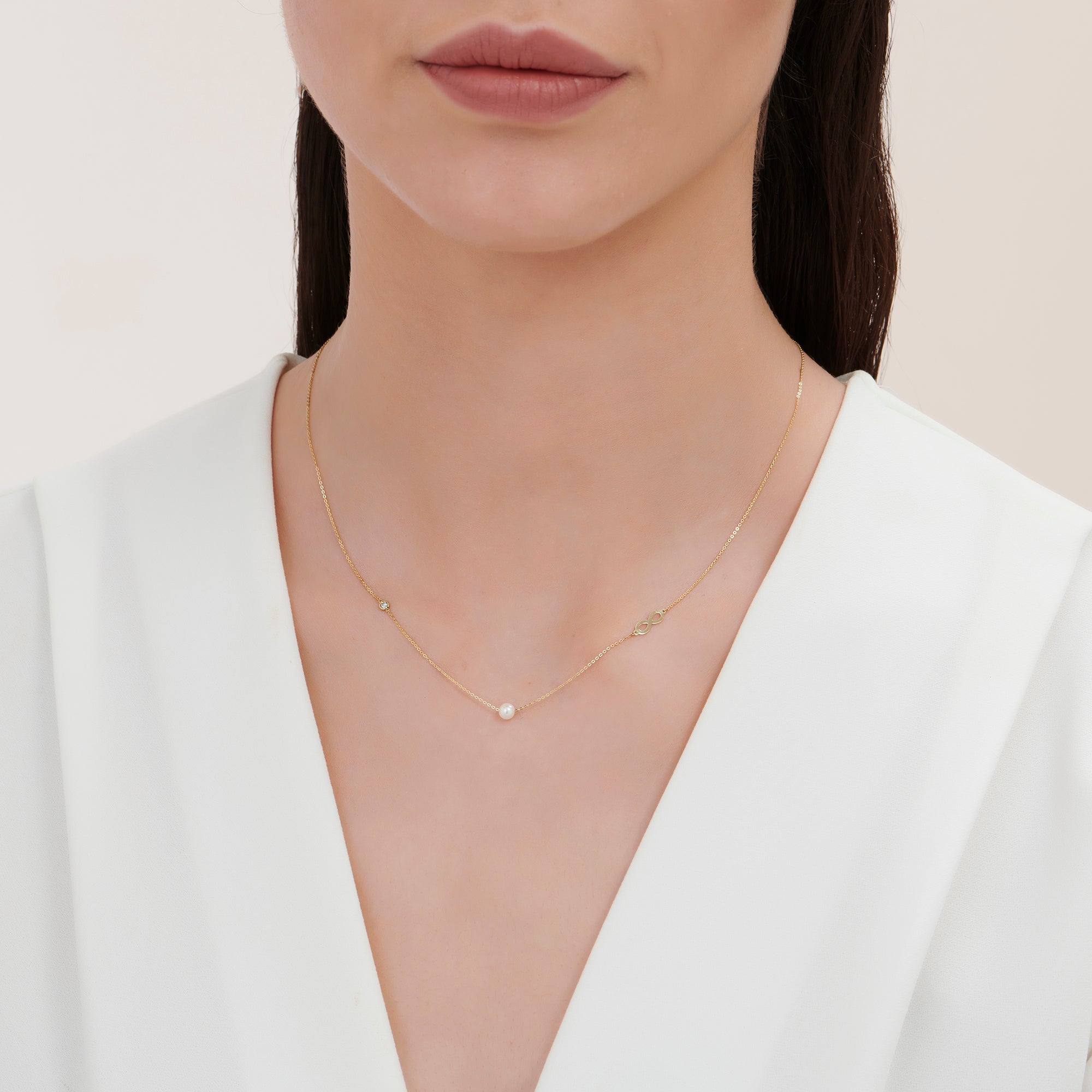 0.02 ct Unendlichkeit Perlen Diamantkette
